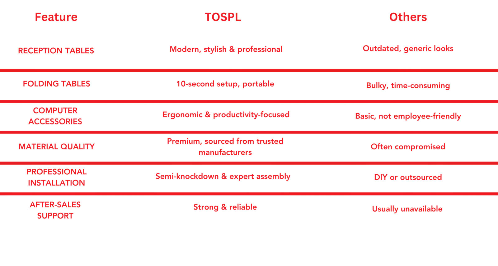 MAKE A WELCOME STATEMENT – TOSPL Reception Tables with its classic looks and Modern Design make your clients, partners and Visitors understand that you are serious about Business. Go ahead, select from our range and make a beautiful entry.